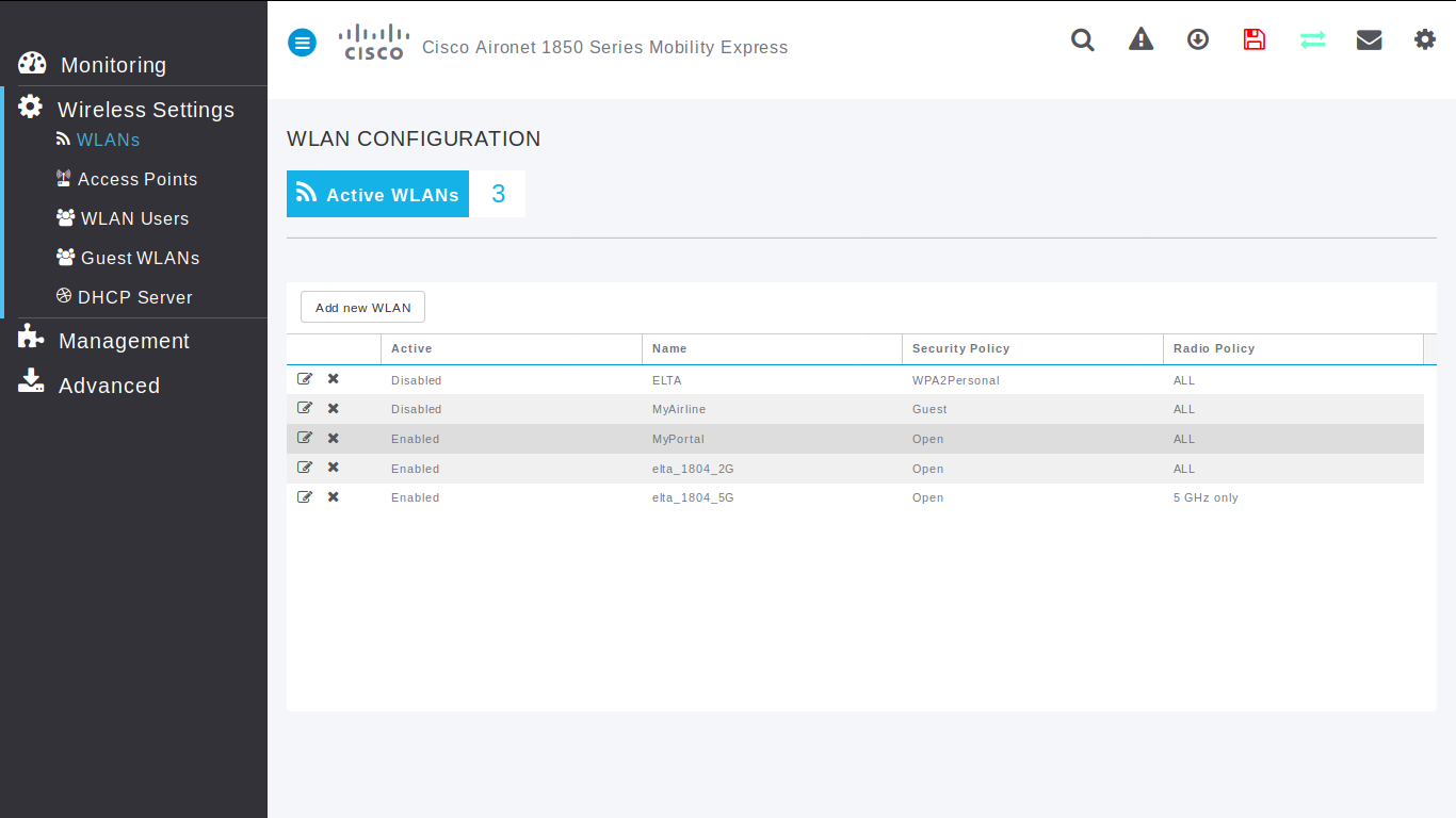 Go to Wireless Settings / WLANs page to create or configure a WLAN for passengers.